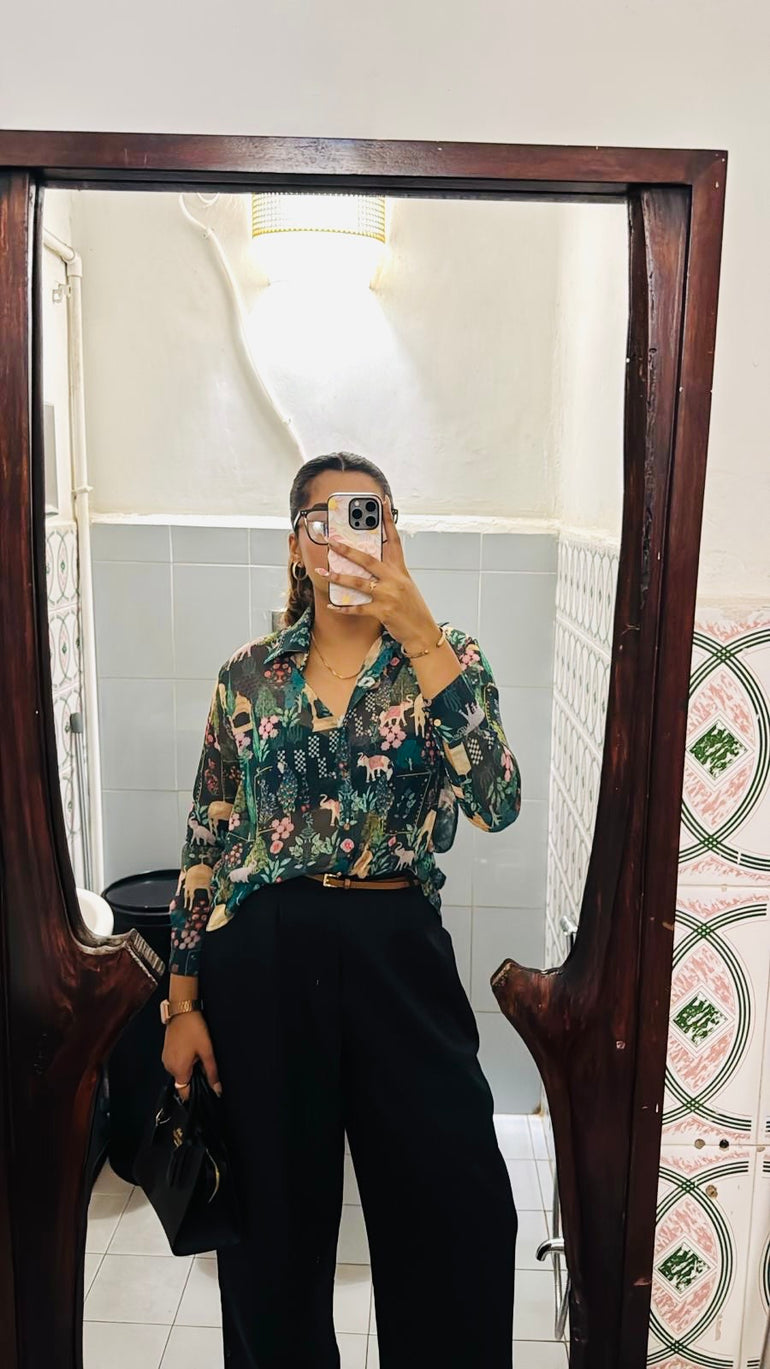 Style Abha tucked into high-waisted denim or left untucked over a mini skirt like shown β both ways embrace its airy elegance. Add small gold hoops, a sleek ponytail, and a classic watch for a look thatβs clean, crisp, and quietly bold. For a business casual spin, pair it with tailored trousers and loafers β effortlessly polished.