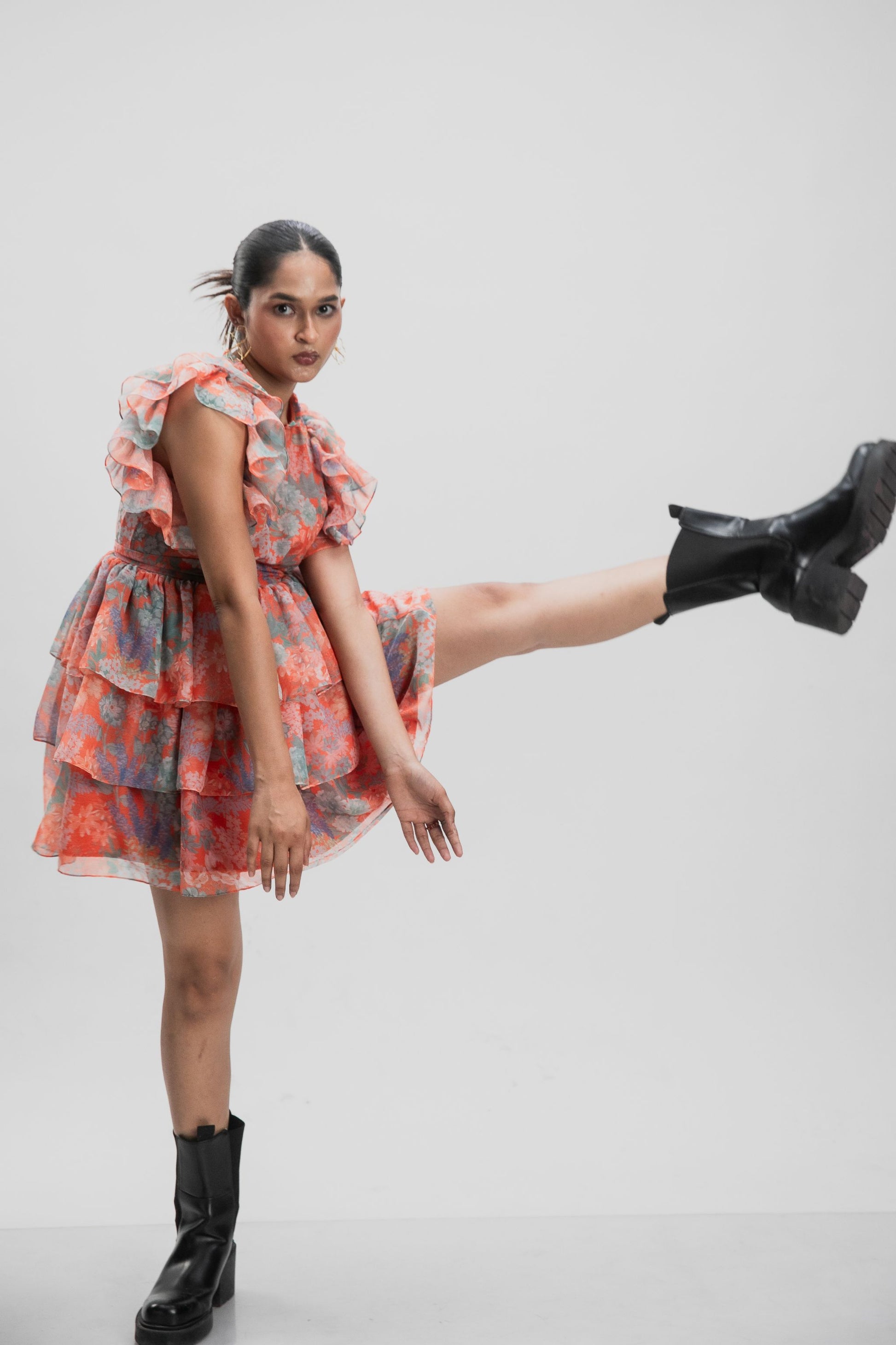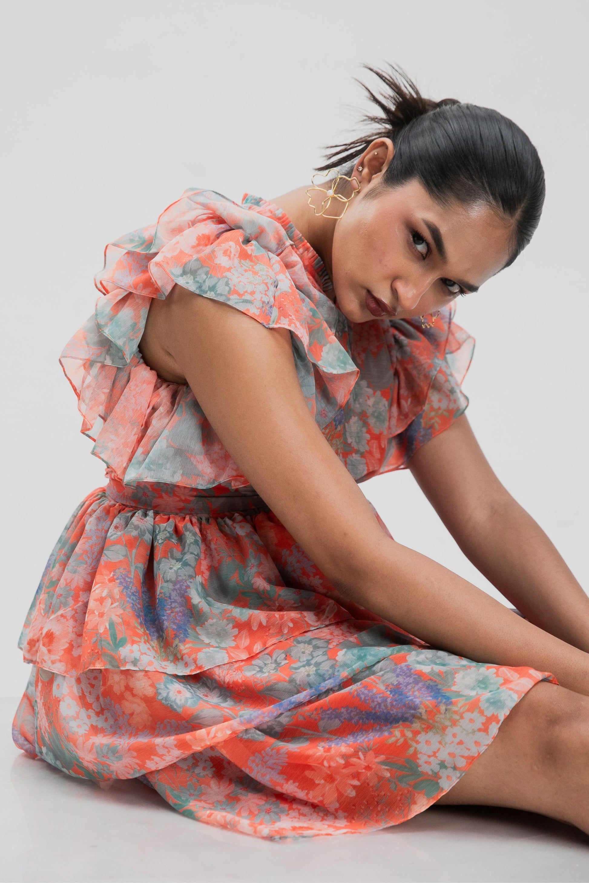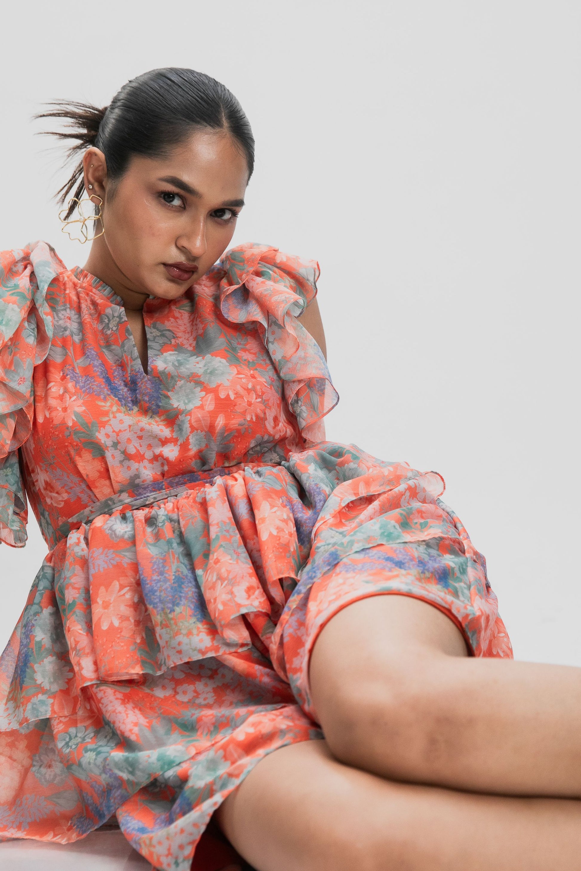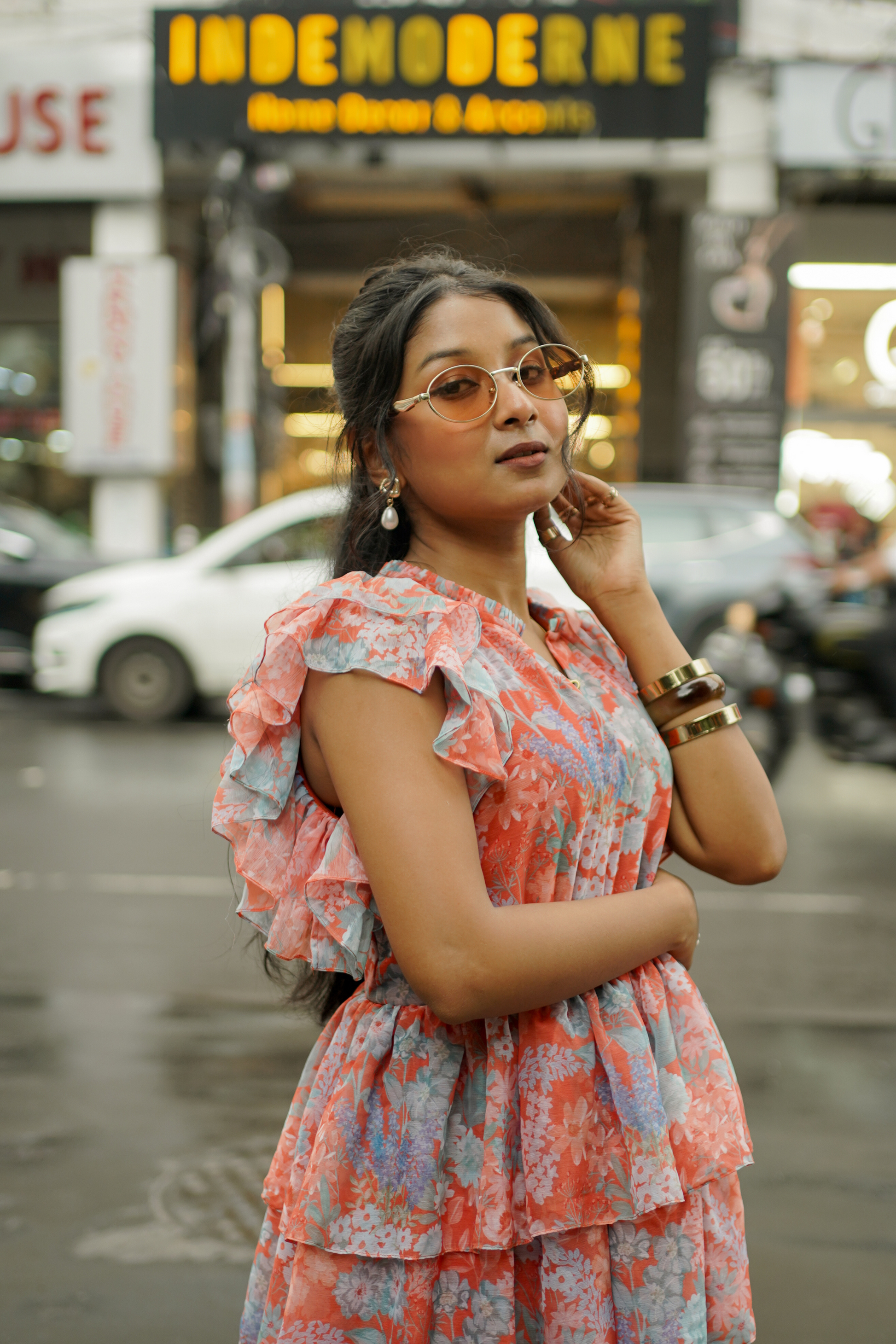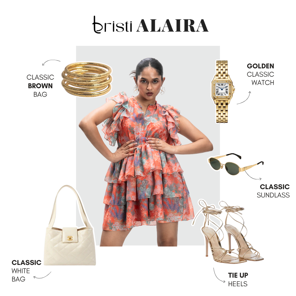 Let Alaira bloom with charm — style it with block-heeled sandals, gold hoops, and either a soft bun or loose beach curls for an effortlessly romantic vibe. Add a golden watch or delicate bangles to finish the look with a hint of polish.