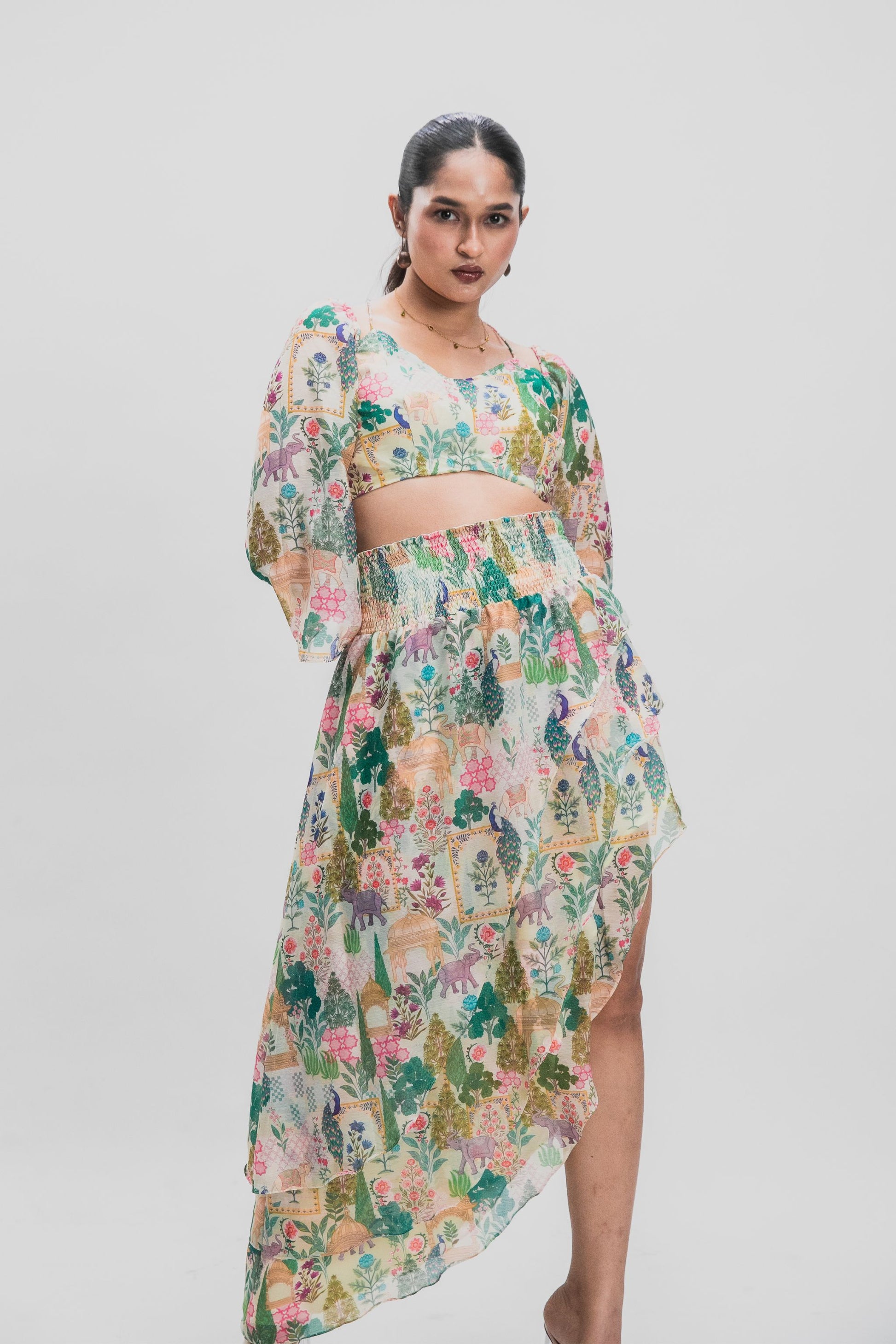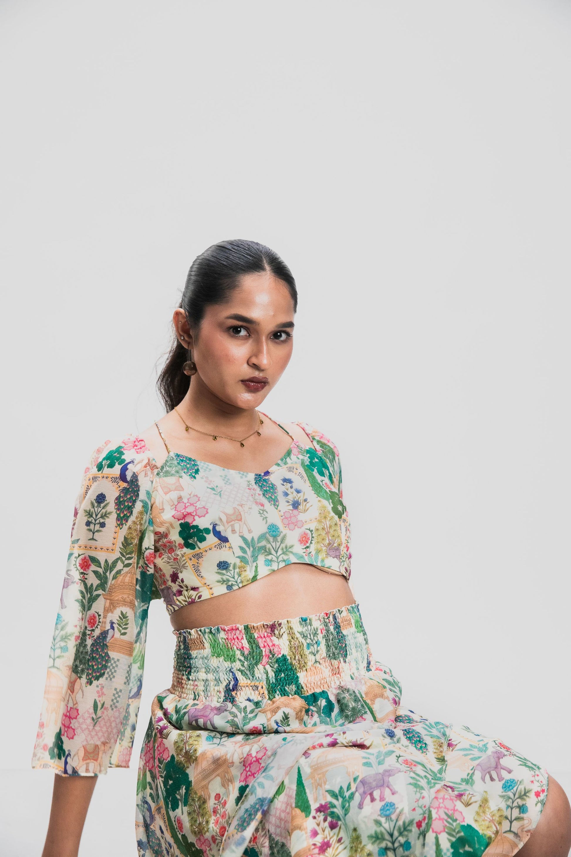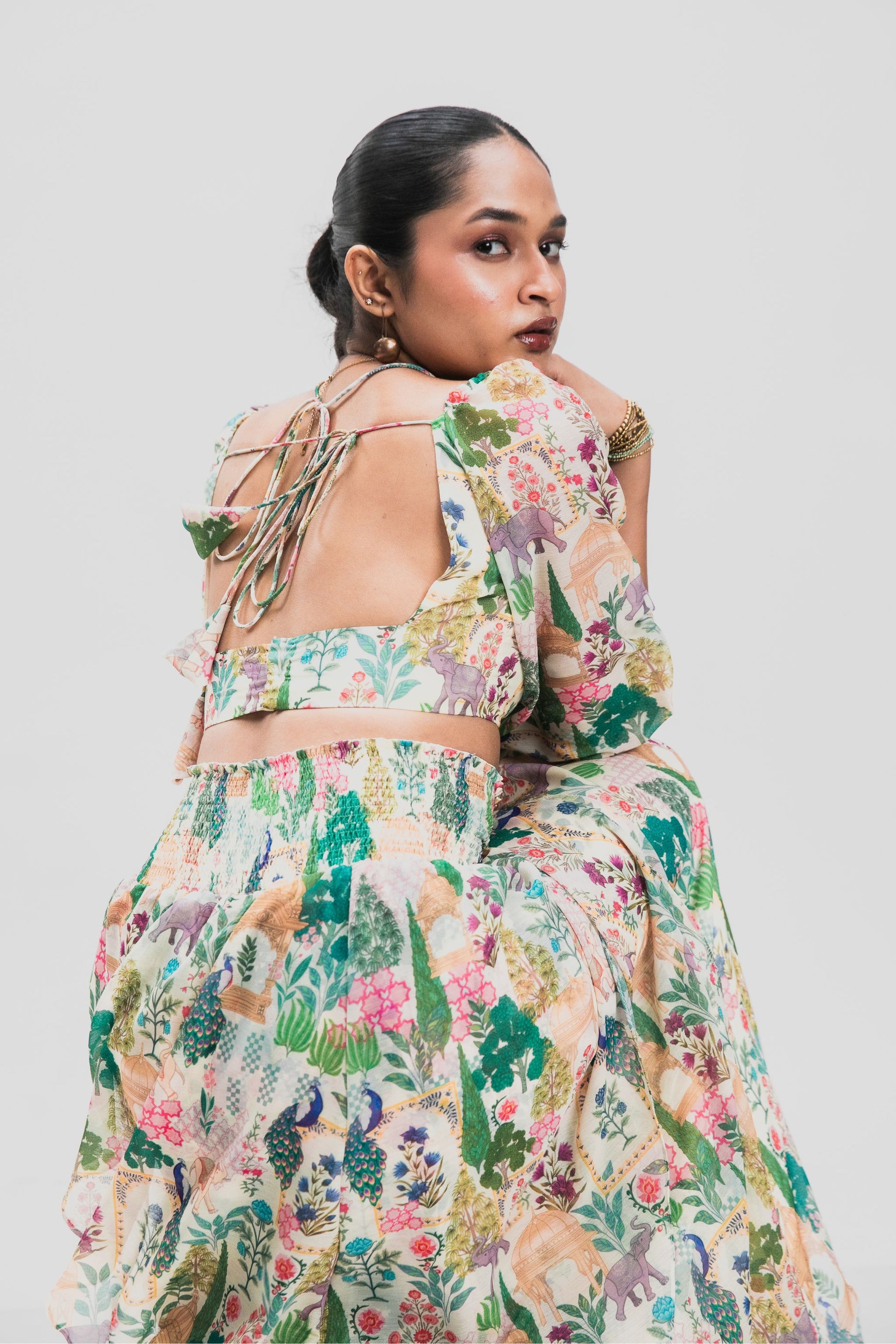 “This skirt reminds me of walking through old city gardens at golden hour. Comfortable yet striking, it’s meant to feel effortless.”
