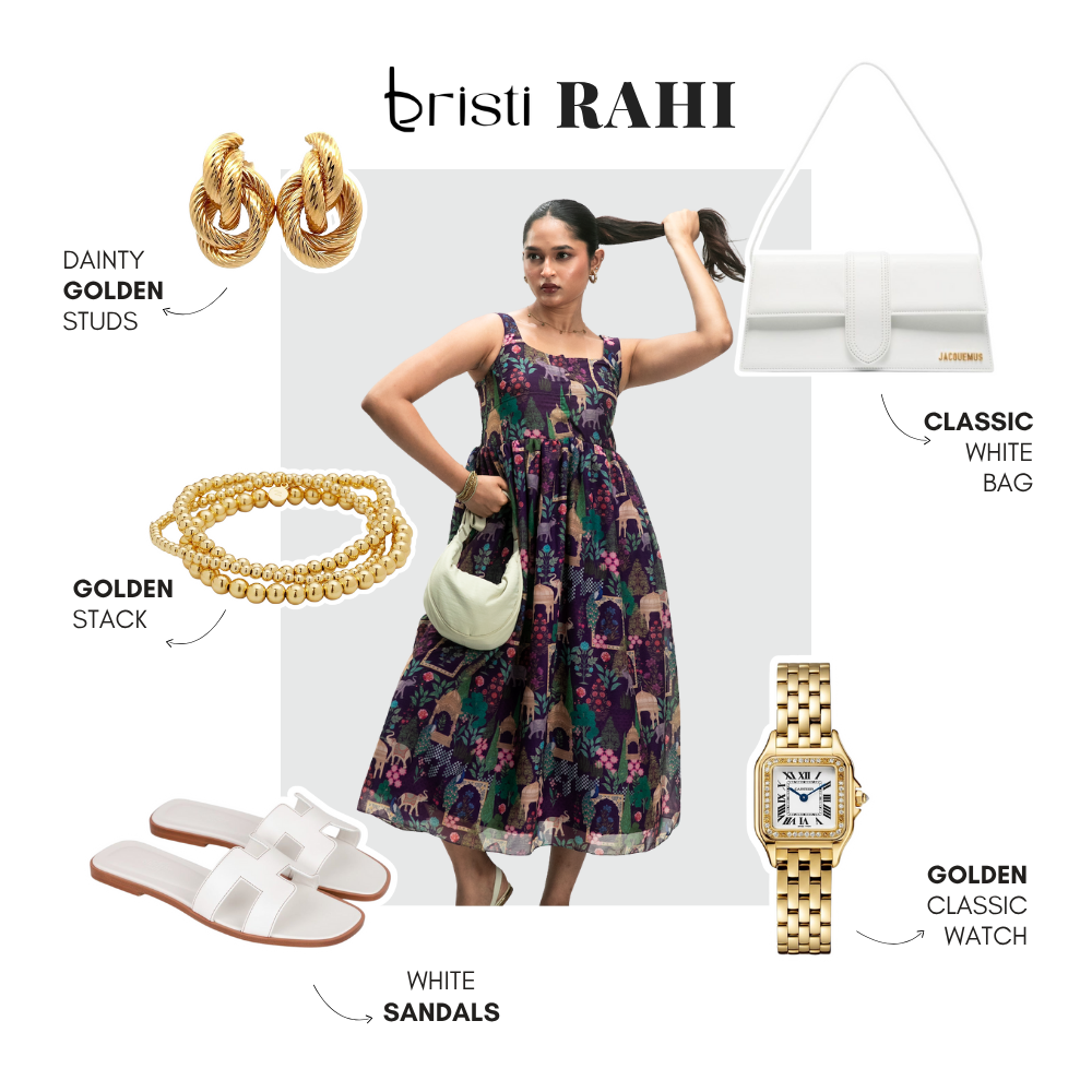 Pair Raahi with strappy flats, statement hoops, a messy ponytail, and a classic golden watch — it’s the kind of look that says you’re going somewhere meaningful, in style.