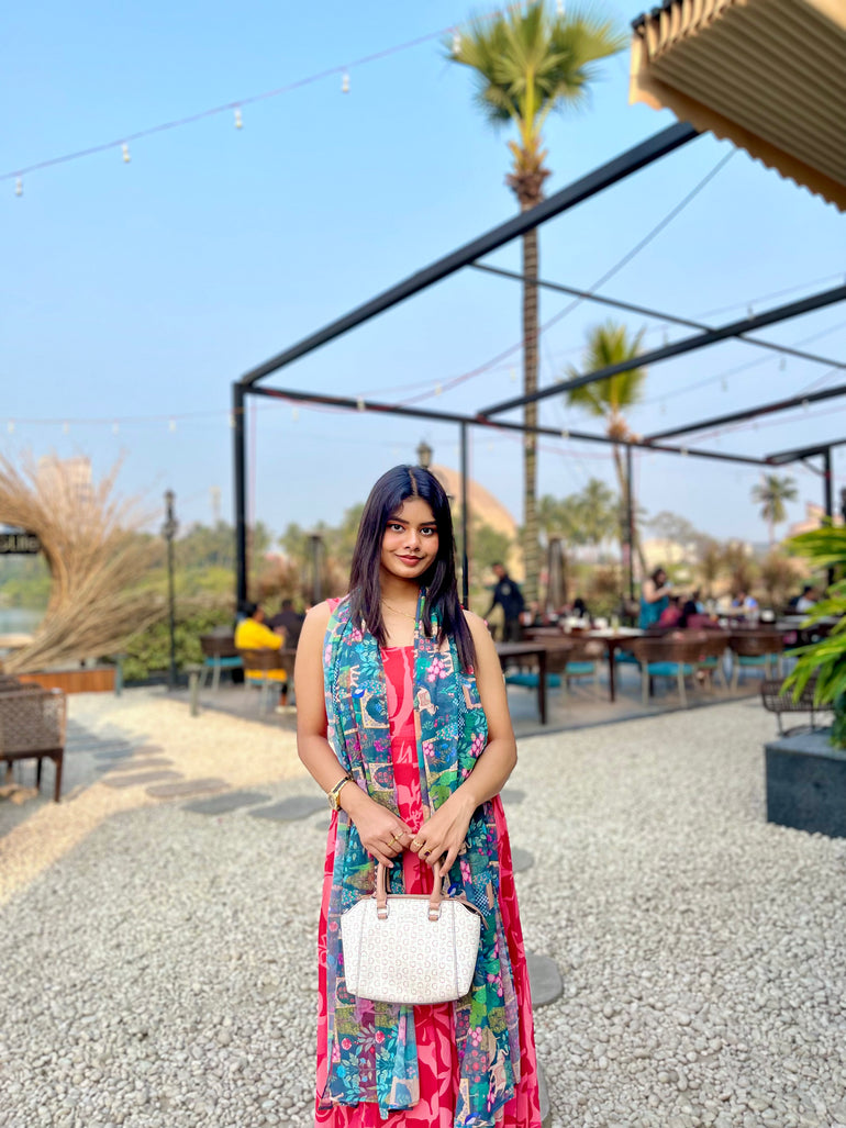 The 'Heritage Orange' print is a labor of love, developed in-house to capture the warmth of Indian festivities. When you wear this, you aren't just wearing a scarf; you are carrying a piece of art that moves with you, effortlessly."
